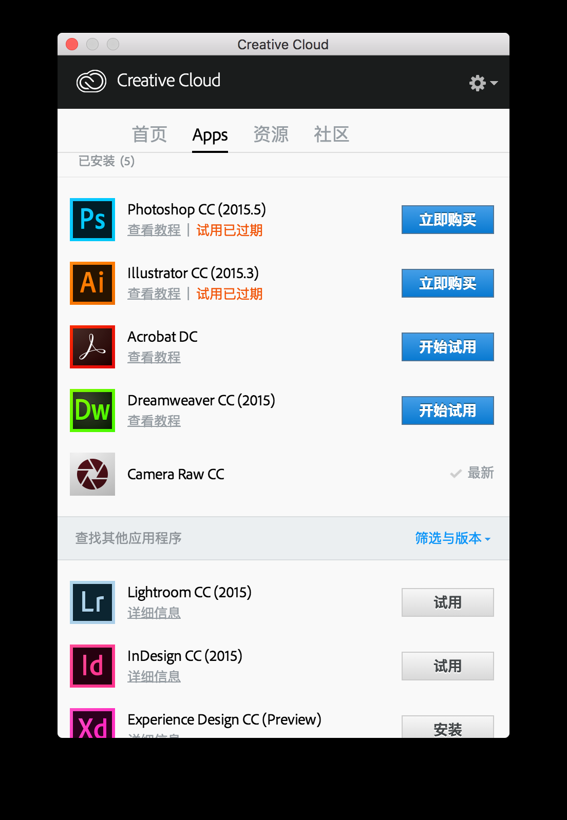 一直有人在讨论Adobe系列的软件,诸如PS,AI等软件的下载,其实,在最新版本的安装程序中已经包含了一个强大的软件,Adobe Creative Cloud,大家请直接安装这个软件即可。安装完毕后,所有的Adobe系列软件即可在线下载安装。
