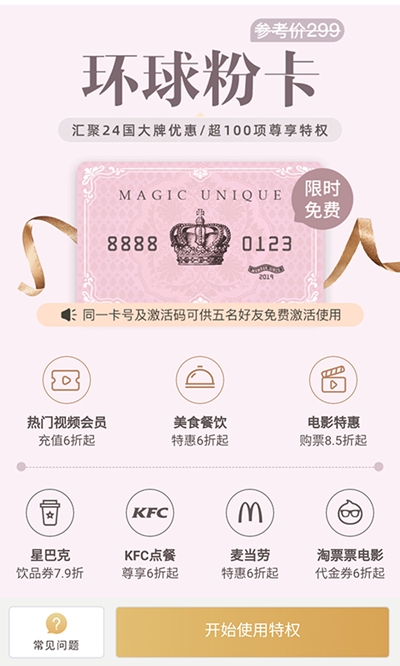 3.同一卡号及激活码可供五名好友免费激活使用,一号开通全家共享。
