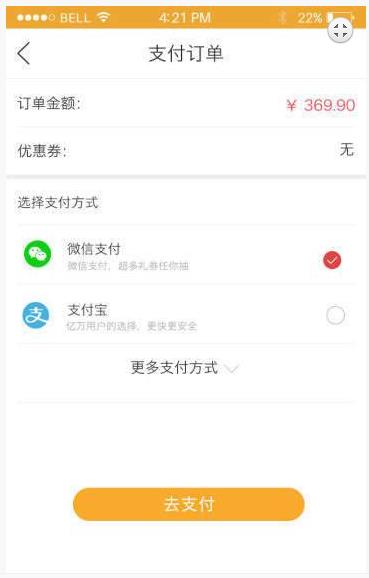 2、付款方式多元化,不仅支持支付宝还可以进行微信支付;