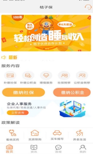 桔子保app是一款智能方便社保查询办理平台。是业界权威的在线自助社保缴纳平台,专注于为用户提供一站式的社保于公积金在线自助缴纳服务,是您身边值得信赖的掌上社保管家。用户通过这款智能软件,避免了很多社保办理的麻烦问题。让用户非常轻松简单的处理完相关事项。平台上面还有非常详细的社保信息,国家每一次出台的各种政策,平台都会及时的获取。平台还开展了其他方面的多种服务,查询,申请办理,以及办理地址的改签都可以直接在平台上面进行快速的办理。比如缴纳、查询、申领以及社保转移等操作都可以在这款软件上面完成,不仅服务更专业,而且安全可靠,万千人士的信赖之选。