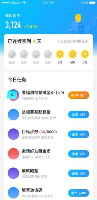 3.大众在享受运动的同时,还可以在这里赚取自己的零花钱,每天签到以及完成平台的任务就可以领取红包奖励了。