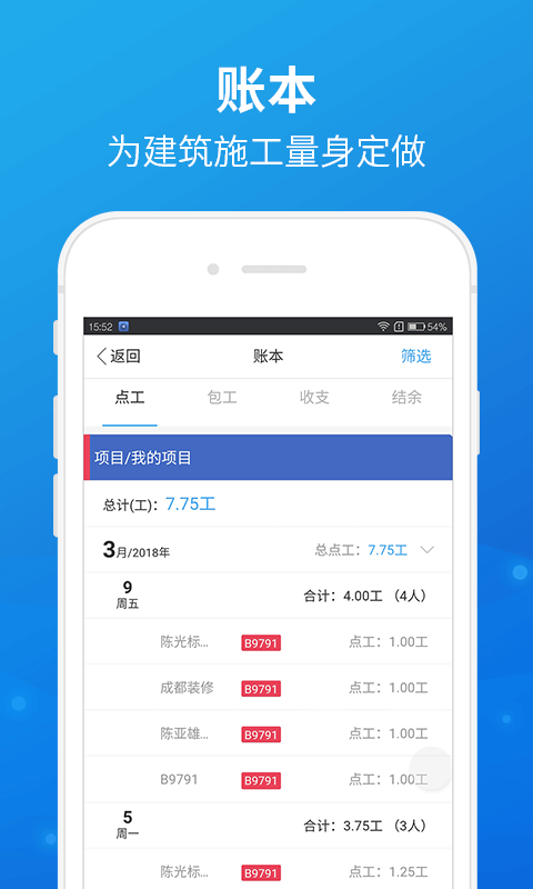 建筑工,招工找活,手机记工记账的好平台,信誉度杠杠的。