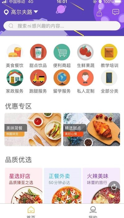 1.生活中的方方面面都可以在这里找到相关的服务类型,餐饮外卖的种类和门店商家很多。