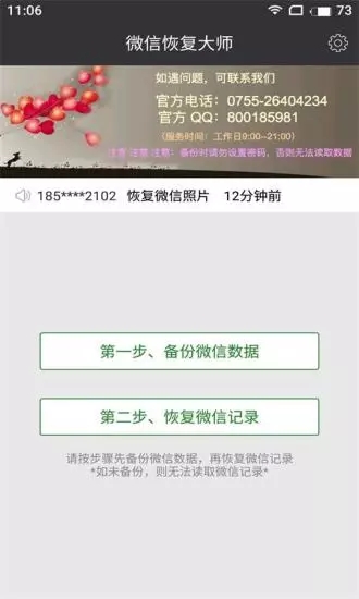 恢复聊天记录是一款手机上的消息回复软件,在恢复聊天记录这种用户可以恢复手机上的微信聊天记录哦,同时恢复聊天记录在手机备份使用上来说还是很专业的,有需要恢复微信聊天记录的用户快来下载恢复聊天记录使用吧!