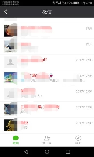 仿QQ聊天查看窗口,直接查看文字、图片、推送内容等,点击语音播放,还可以一边播放语音一边查看聊天内容!