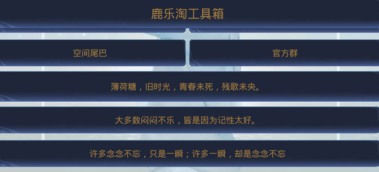 鹿乐淘工具箱是一款功能强大的qq工具箱软件,支持万人赞代码、强制聊天、蓝色说说生成、特殊字体生成等功能,还有qq辅助举报功能哦,一个软件,支持多种项目,支持QQ恶搞撤销信息功能、支持vip功能、能够对快手视频来进行解析等等,让你们解决日常各种麻烦事情。
