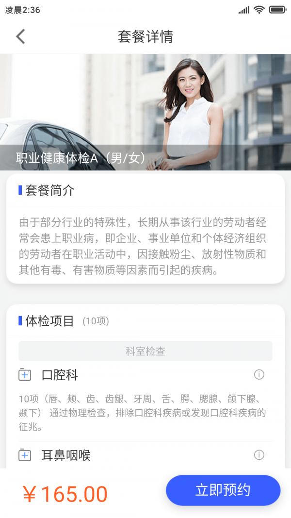 体检预约:可以自由选择体检项目,自由预约体检时间;