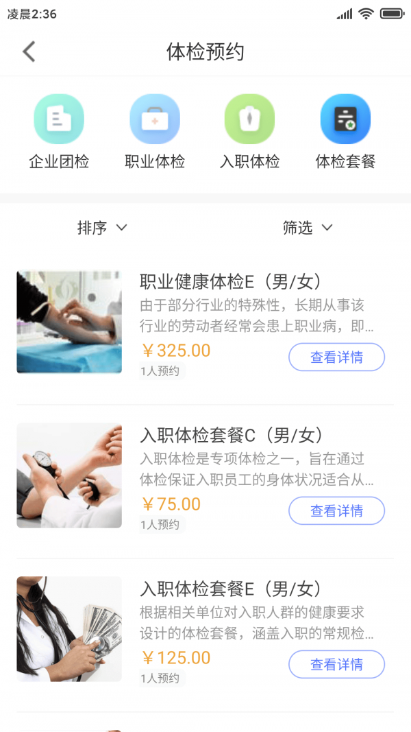 浏览筛选后所有体检服务详情,挑选满意服务