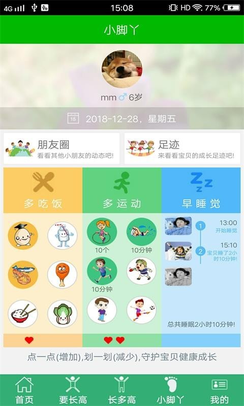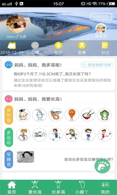【长多高】成为孩子的“玩伴”,每天记录孩子一天的饮食、运动、睡眠以及每日心情,简单的文字,偶尔片段都可以成为亲子记忆的瞬间。