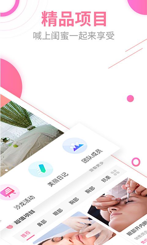 百变美app:一款最新上线的医疗美容服务软件专注于高端会员制服务,为每一个用户提供专业皮肤管理、纤体、整形等服务,让女神一生都那么美,感兴趣的喊上闺蜜一起试试。百变美是会员邀约制高端医疗美容服务平台,提供丰富的医美资讯、安心的服务保障,让求美的你享受生活美容、医疗美容私人定制服务,带来全新的变美体验。提供一对一的咨询服务,超多美容咨询不断更新,专业美容专家提供问答,量身定制美容方案,轻松变美不走弯路,欢迎来下载!