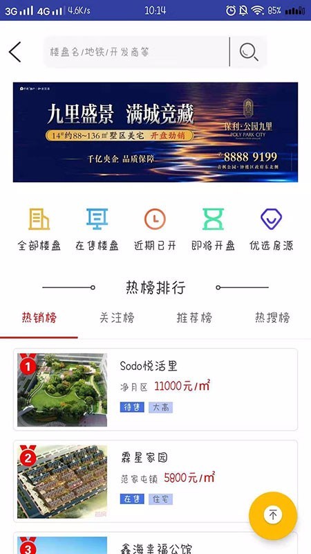 提供了热销排行榜,将最热门火爆的房源推送给你,先到先得,购房有保障;
