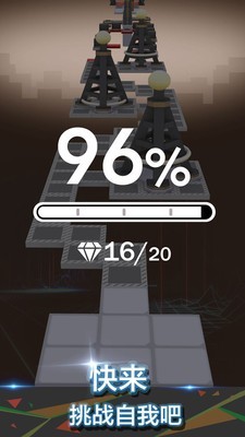 2.用手指左右拖动球以避免各种障碍,并且不要离开赛道,随着音乐的节奏,继续挑战您的极限。