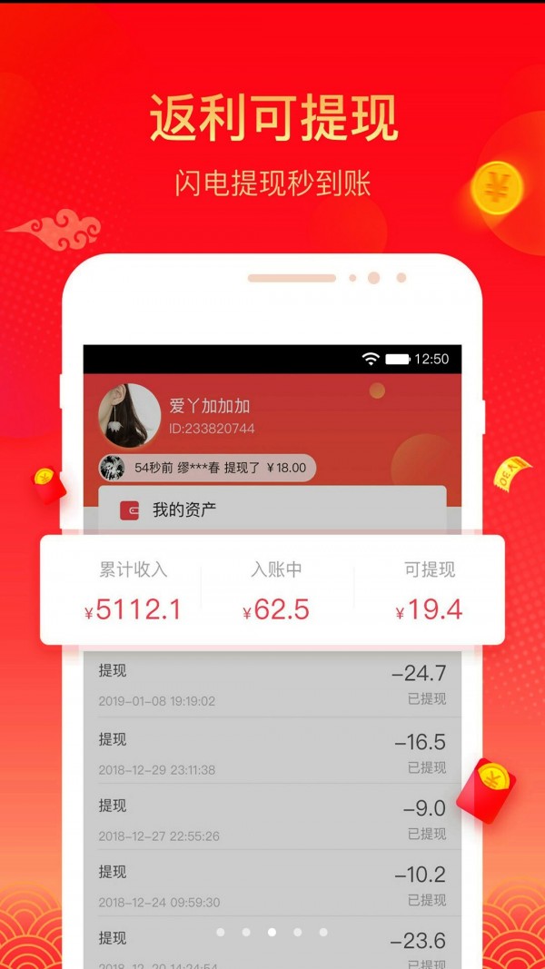 [自动返利]每成功购买后商品后都会有返利,自动到账,可直接提现;