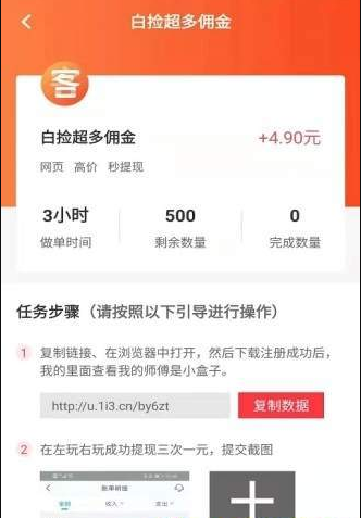 2、每个任务带来的佣金都不算低,积累几天就能达到兑换现金的标准,用户们可以放心。