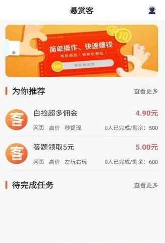 悬赏客app是一款可以在线发现超级多的小任务的平台,在这里可以找到很多的任务来在手机上完成哦,不需要出门就可以在线得到兼职的机会,也是挺方便的。平台上还有其他的一些网赚的方式,大家都可以在上面接到悬赏的任务,摈弃给通过手机做任务来赚钱。“悬赏客”可以让人们通过手机轻松赚钱,对于空闲时间比较多的朋友,都可以来此接任务赚钱了。分享广告、推广视频、游戏试玩、购物刷单...都能带来现金奖励。而且这里的任务每天都能更新,让大家完成任务顺利的赚钱,快来下载试试“悬赏客”吧!