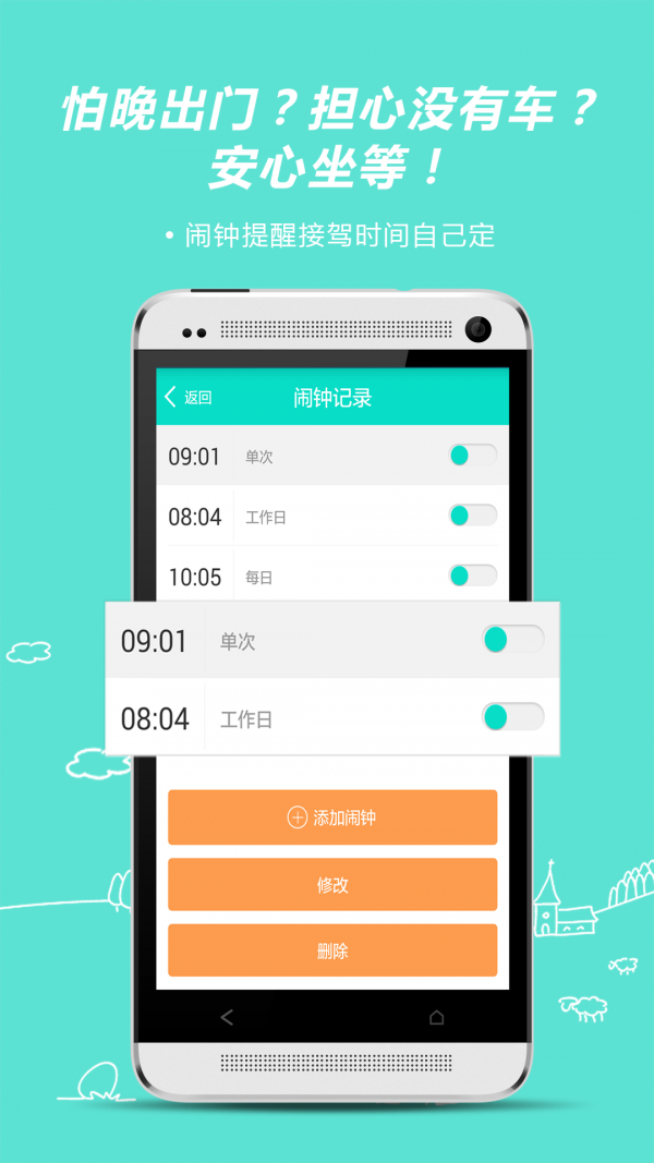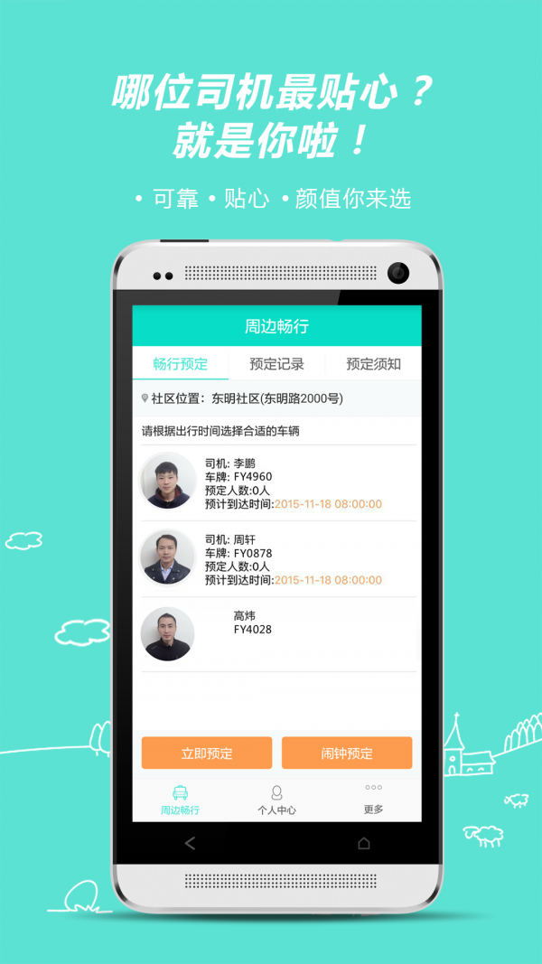 可根据出行时间设置闹钟,系统提前为您推荐车辆!一切由您选择,出行更方便、更轻松