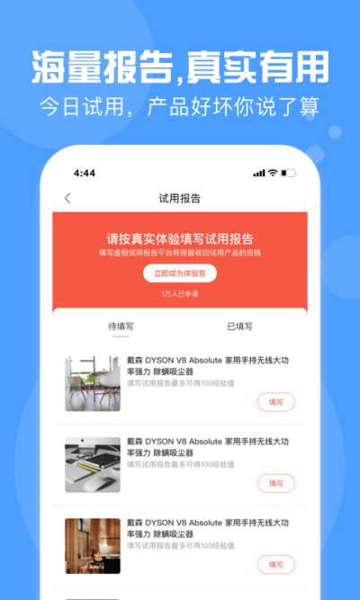 1、资源丰富:试用任务特别的真实,而且种类也比较多,用户们随意选择完成;