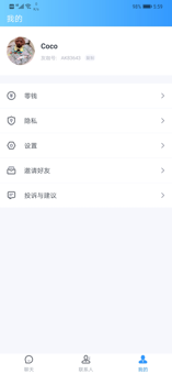 UOKA友咖手机版是一款专门的提供给用户找到合适的朋友的平台是,上面的好友真的有很多了,大家可以找到和自身聊天特别契合的那些人来交朋友,以后也会有更多的人陪着聊天了。专为有同样兴趣爱好的用户打造的聊天工具,在这里有大量优秀的用户活跃,你可以找到很多与你志趣相投的人,与他们在线交流沟通,互相分享心得,在彼此的兴趣爱好中发现更多价值。这个平台的界面真的超级超级的简洁了,只有聊天界面、联系人还有我的界面,不会出现烦人的广告,也不会有什么的烂七八糟的东西,单纯是一个交友的地方。