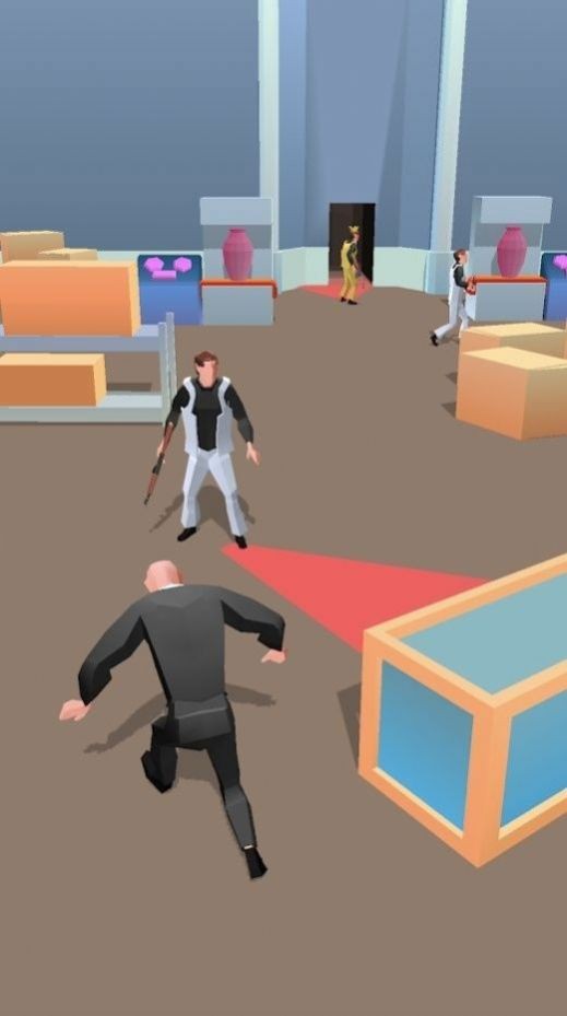 2、操作一名光头杀手执行任务,你需要控制角色躲避敌人的视线范围成功偷袭;