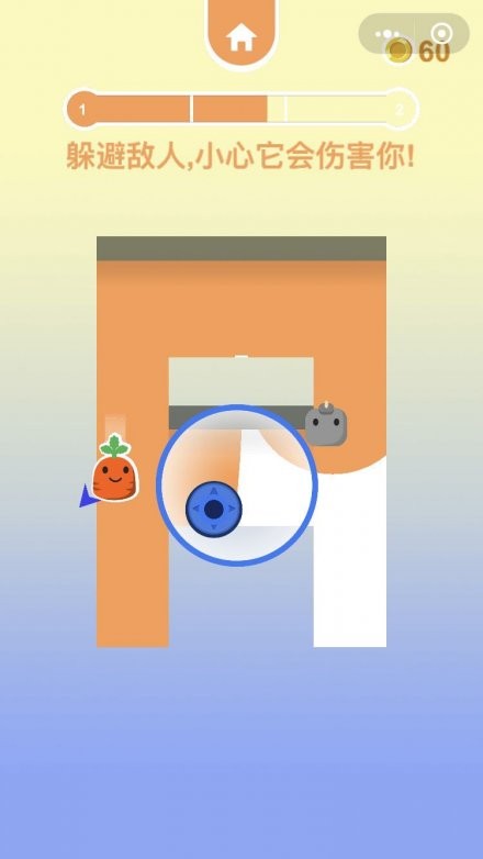 1、点击屏幕按住小果冻即可涂色,涂满整个区域就算闯关成功;