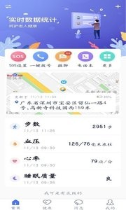 地图:系统自动显示老人位置,展示设备剩余电量;