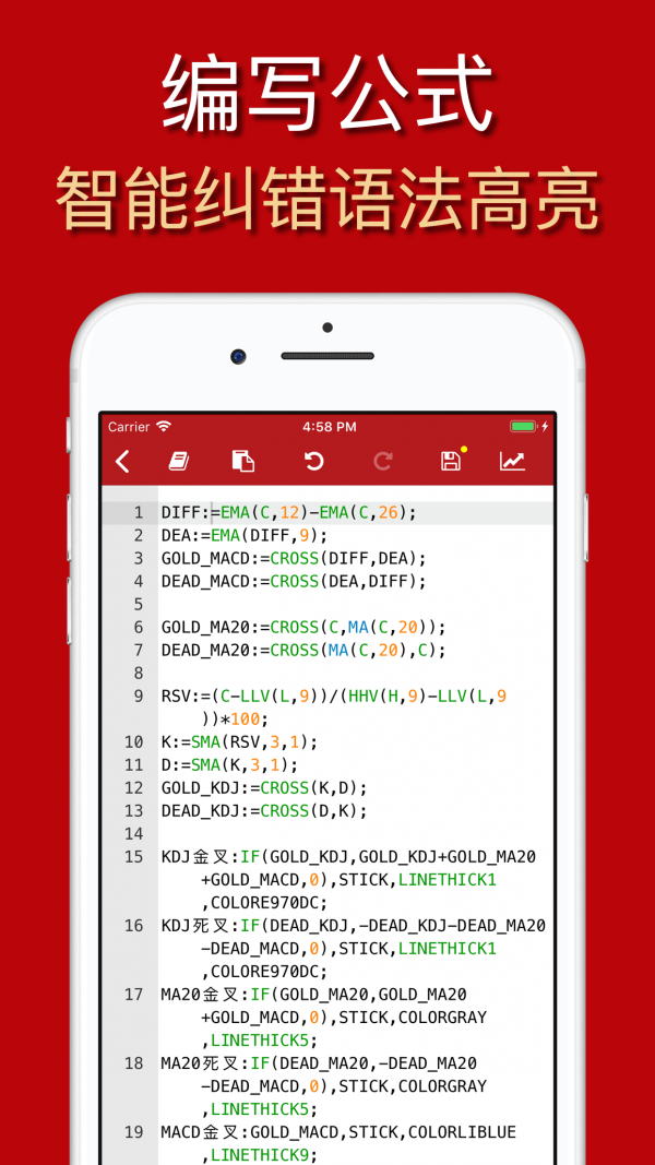 2.公式编辑:手机上编写公式,并应用到个股上展示;