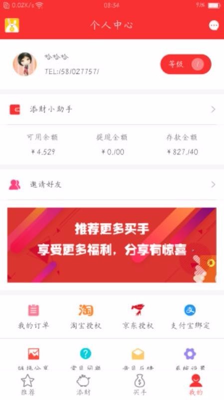 在添财买手app可以绑定个人支付宝账号,便于提现的时候提现到支付宝。