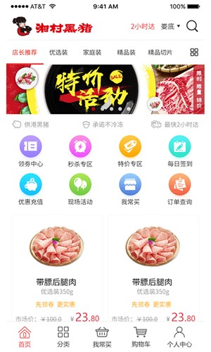 湘村鲜到是一款最新的电子商城,这里有领券中心,秒杀赚钱,特价赚钱,每日签到,优惠充值,现场活动等功能板块。湘村鲜到APP汇聚了众多美食,极速送达保鲜健康,为您的饮食系统增添更多健康元素,猪肉产品覆盖冷鲜肉、腊肉制品、熟食等类型,您可以享受到供港黑猪的品质与口感。有需要的朋友欢迎体验。