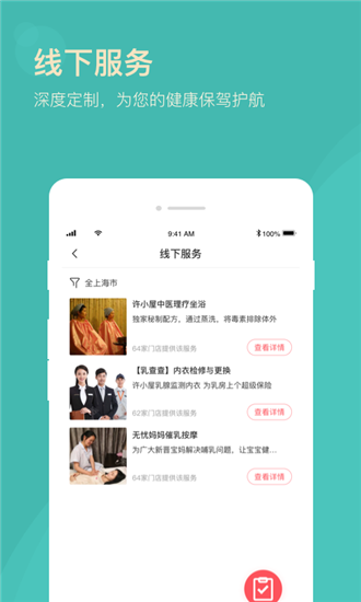 3、用户可以选择定制线下服务,享受专业的线下服务,为自己的健康保驾护航。