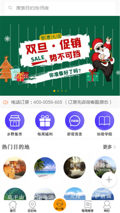 1、平台上面汇集了全国多个城市的民宿,你可以按目的地搜索;