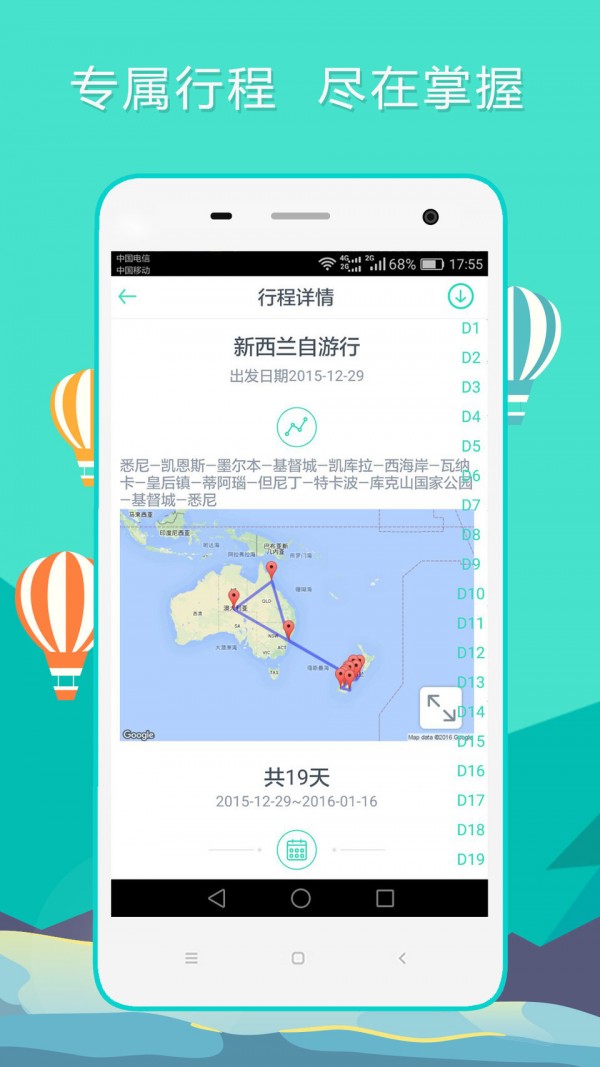 5.今日行程,旅行中的行程提醒,当日行程一目了然。