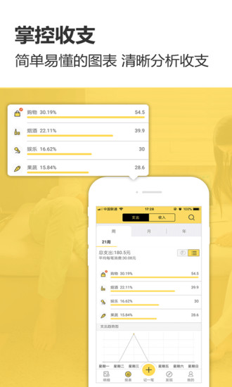 3、专业图表:线图饼图展现,清晰了解每周、每月收支构成;