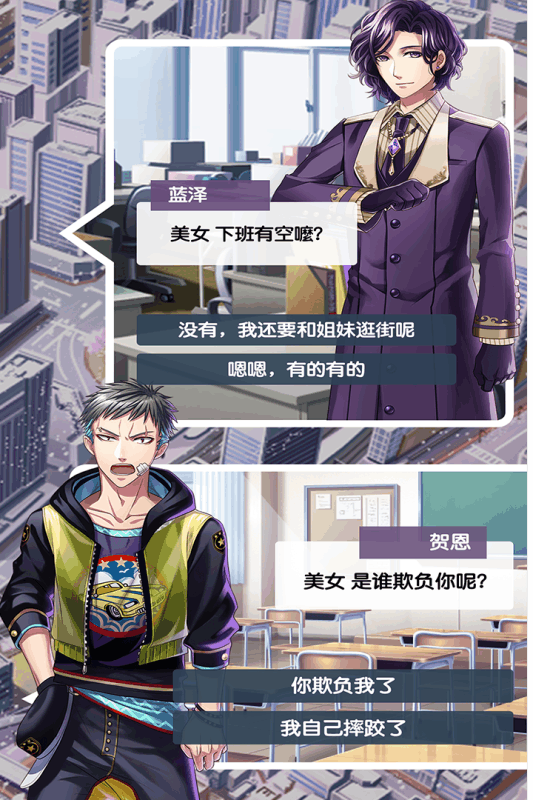 游戏的画风还不错,里面的NPC颜值都挺高的,虽然没有多么的精致但是清晰度很高,故事剧情也比较精彩,还有背景音效搭配的也很恰当,虽然是文字剧情恋爱游戏,但是这款游戏里面的是可以选择男女性别的,自由度还是比较高的,玩起来很有沉浸感。