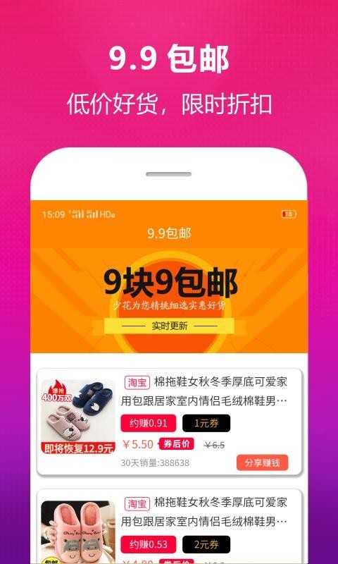 少花app是一款超好用的购物软件,少花app聚集了海量的优惠券,各种额度的都有,少花app每天还有很多的优惠活动,可以满足你的各种需求,给你不一样的购物体验,是亿万网民都能用的“电商优惠返佣创业平台”超高购物返佣,少花app秒杀同类平台,大额优惠券日日更新!