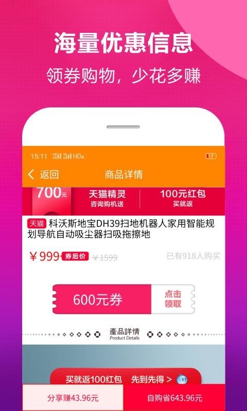 一键搜索全网优惠卷商品,可以领取隐形优惠券、购物实在很优惠。