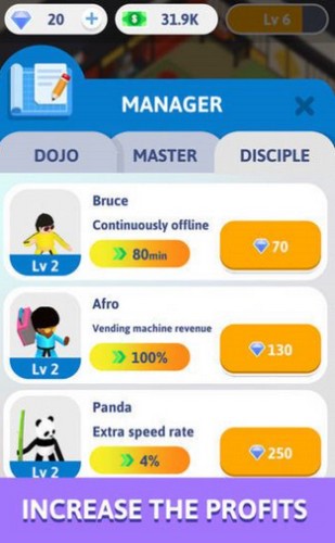 功夫也休闲是一款卡通风格的模拟经营类游戏,玩家即将成为武林中的一名侠客,为了能够在这个世界之中有一份属于自己的地位,你必须要不断的变强,变强的过程是多样的,首先就是要寻找一个门派,然后去学习相应的功法,功法分为几种不同的技能,学习到它们之后需要去增加其中的实力,提高它的等级,在文字之中将会介绍目前的背景和目前所处的环境中,每一章节都有一个小副本!