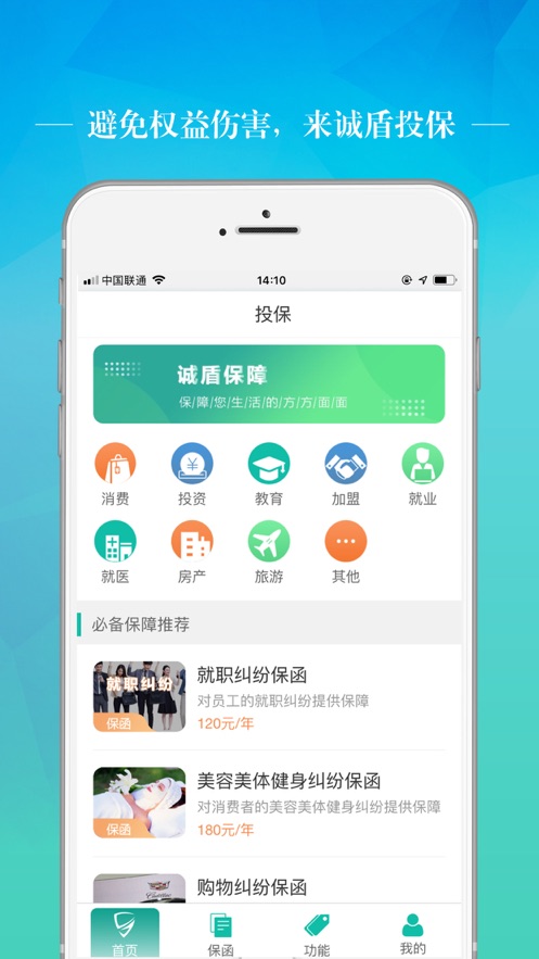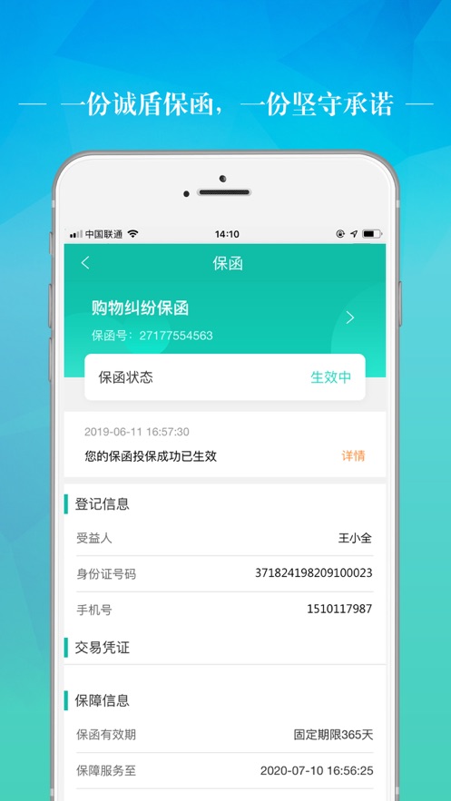 3、诚盾理赔:用户一旦投保,如消费或者产品使用过程中,出现欺诈/产品质量等欺诈行为,诚盾为用户提供理赔。