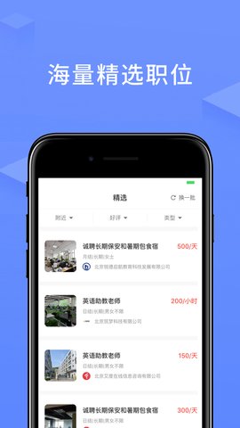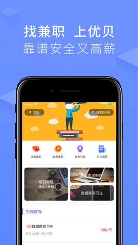 优贝兼职app是国内领先的兼职平台,海量岗位,优贝兼职app内容丰富,优质岗位、热门岗位实时推荐;求职消息时刻提醒,好兼职、好岗位不错过;求职进度实时展示,轻松掌控求职进程。想要精准快速找到心仪的兼职工作,求职消息时刻提醒,好兼职、好岗位不错过;求职进度实时展示,轻松掌控求职进程。汇聚海量岗位整合更多信息,优贝兼职app保证每条兼职信息的真实性,小伙伴们可以放心选择,欢迎下载。