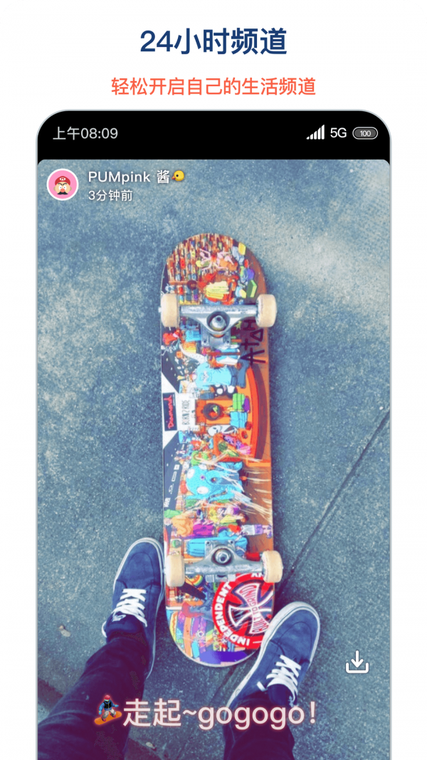 你也可以分享到个人频道上,回播一天24小时的动态。