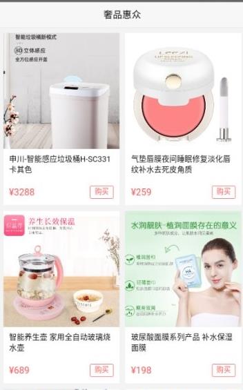 奢品惠众app是一个让用户们可以信任的优惠购物商城,该电商平台上线了很多优质的新产品以及各种惊喜的优惠活动,在这里可以享受更高性价比的购物方式,直接手机上下单就能在家取货,即使不出门也可以买到很多你需要的商品!这里的大牌真的超级的便宜,比在专柜或者专卖店买的时候便宜太多了。关键是这里面的商品都是正品行货,不会出现假货来欺骗用户,这里面的商品都是平台这里拿到的折扣价格,便宜出售给大家,让用户能够体验到花很少的钱买到最好的物品的感受。所以需要的朋友们快来这里吧。
