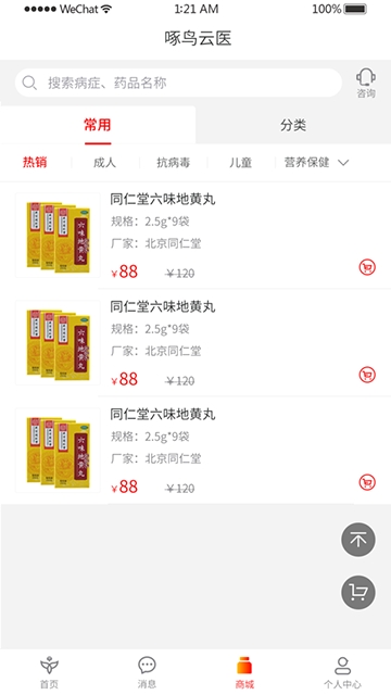4、商城上有种类丰富齐全的药类用品,满足普通大众用户的基本用药需求。