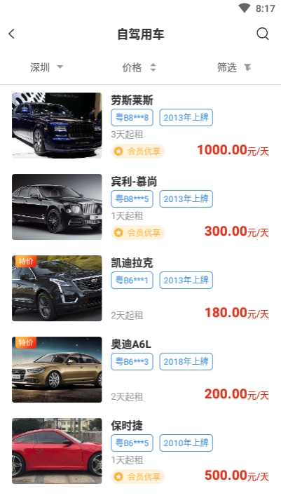 3、不同的车型价格也是不一样的,平台里面价格都是一目了然的,大家可以根据这个来选择。