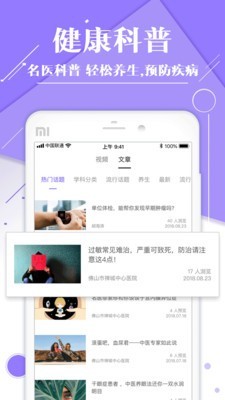 健康管理:观看健康宣传视频,了解健康最前沿信息。