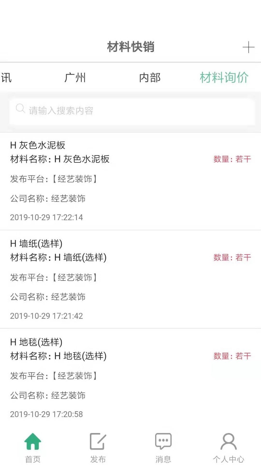 1.首页:集资讯、广州、内部、材料询价频道于一体;