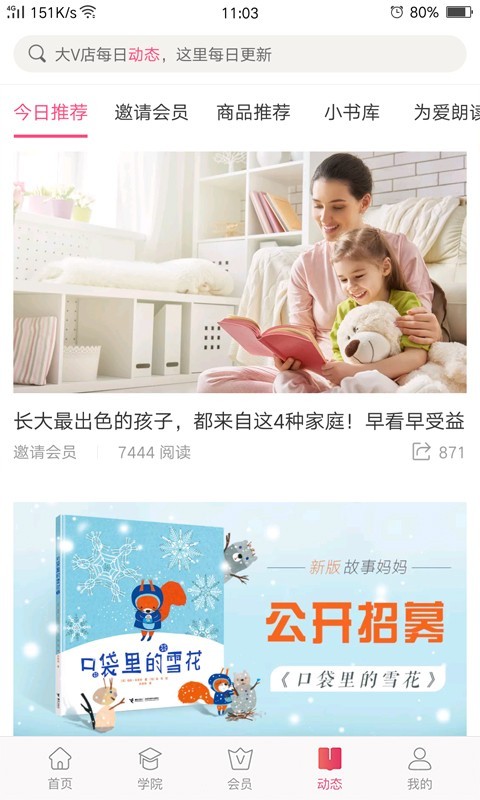 作为一个专注于亲子阅读的电商平台,大V店包含了妈妈课堂、图书音像、母婴用品、社区交流、售后服务等几大功能,妈妈用户可以通过此款手机APP更方便的管理店铺、学习交流,同时,还可以对商品进行评论、分享好的产品等,具有其他手机APP不可替代的权威性。
