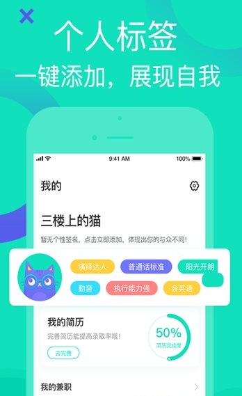 2、知狸兼职app可以添加你的自己的兴趣标签进行自我的展示;