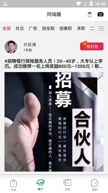 3.上面还会发布很多的同城的招聘启事,可以进行聊天面试哦。