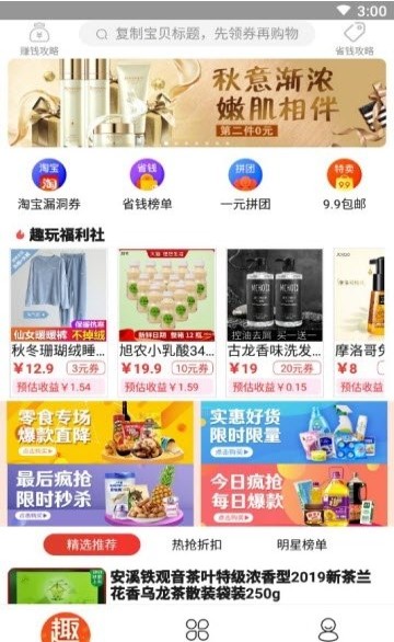 1、平台每天都有一元好货,9块9包邮,团购限时抢购等活动,超多优惠。