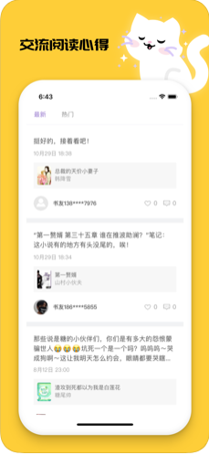 小说社区app是一款全新上线的看小说软件。大家可以在这里看到超多更新的小说资源。大家还可以关注自己喜欢的推文博主,线上ta有新的动态你全部都能知道哦。想要看优质小说享受美好的阅读体验就来找小说社区。当前最热门的小说在这里也可以看,平台内容题材种类繁多,在这里,用户能够尽情的通过看小说来释放自己的压力,每天的凌晨,系统就会在后台更新大量的当日作者提交的最新篇内容,并且会在首页进行推送,正在追书的都能够第一时间收看。每天都有层出不穷的线上各类小说的源源不断上线,欢迎大家来体验哦。全站小说全部免费下载更新。