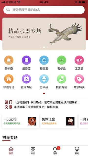 匠心屹拍App是一款专业的艺术品拍卖服务软件。在这里汇集了海量的精美艺术品供广大用户朋友们进行拍卖购买。紫砂壶、景泰蓝、和田玉、奢侈品、工艺品、艺术品等等这里都拥有,并且该软件使用方式也十分的简单,用户可以随时随地的拍卖自己手中的艺术品。都将会持续的带来更加优质与完善的线上的拍卖等的综合服务的,在这里为你去进行发布的都是一些优质的收藏品,大家可以参与进来看一看。多种的古玩字画等、还有一些市面上看不到的东西可以让你去开眼。